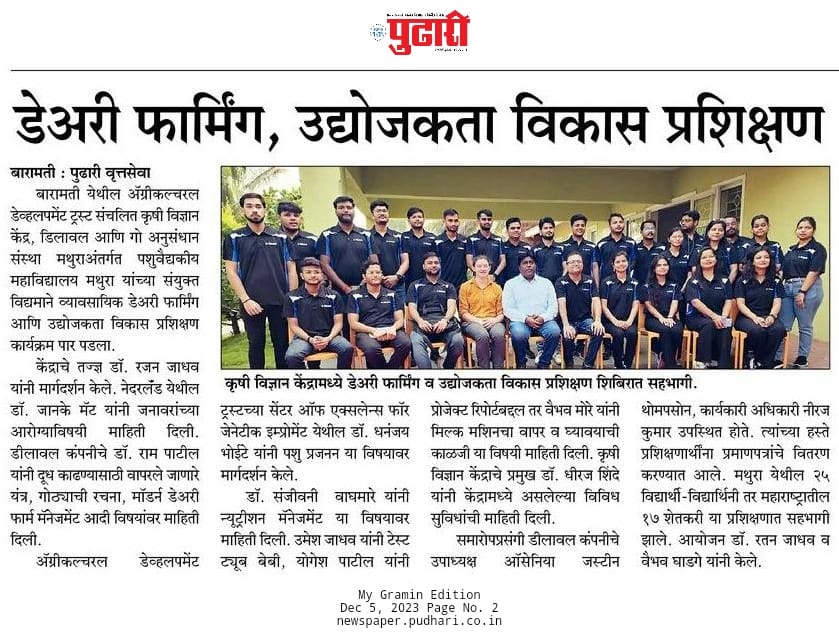 20/24 sep 2024:- Modern dairy Business/Teachnology management training.